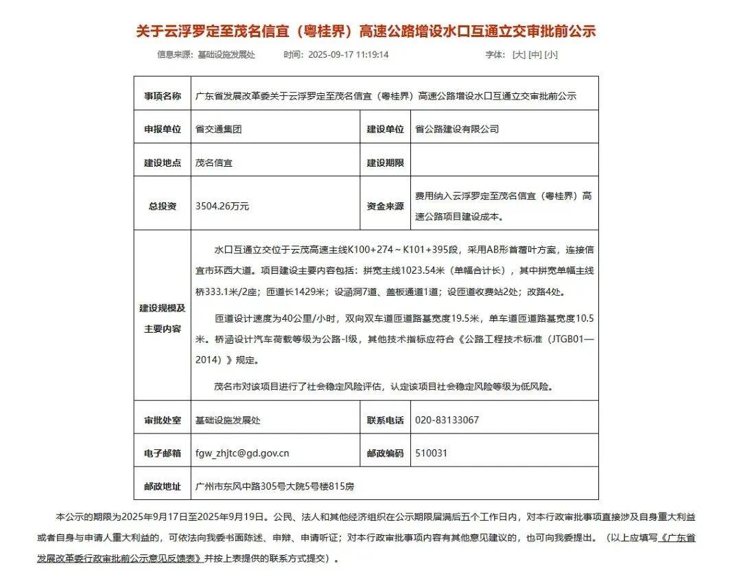 9月17日上午,电白区藏书楼新馆正式启动试运营。新馆坐落于海滨跨海大桥(登步大桥)北侧,取区档案馆、区规划馆配合构成“三馆”建建群。新馆总建建面积达2万平方米,可同时欢迎读者约3000人,日欢迎量峰值可达10000人,其规模位居广东省县(区)级公共藏书楼前列。馆内设想藏书量135万册,现馆藏纸质图书45万册、电子图书20万册,设有阅览座席1500个。做为广东省聪慧藏书楼扶植试点项目,新馆的科技体验成为一大亮点。馆内配备智能化办理系统,更有大型裸眼3D沉浸式交互厅、VR体验区、AI数智画屏等科技互动空间。2025年9月17日,广东省成长委发布关于云浮罗定至茂名信宜(粤桂界)高速公增设水口互通立交审批前公示核准前公示。水口互通立交位于云茂高速从线段,采用AB形首蓿叶方案,毗连信宜市环西大道。项目扶植次要内容包罗:拼宽从线米(单幅合计长),此中拼宽单幅从线道;设匝道收费坐2处;改4处。总投资3504。26万元。