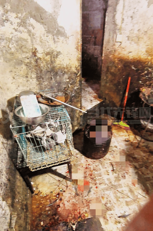 为其所言非虚,店从率领记者向冷巷深处前行约10米,打开一扇小门,进入一个约二三十平方米的屋内。刚进门,一股浓郁的禽类气息和粪便臭味便劈面而来。屋内气象令人。一处约两三米长的铁笼内挤满肉鸡,笼体上方鲜明摆放着带血刀具,疑似宰杀东西。衡宇左侧,一口大锅盛满鸡毛取污水,分发刺鼻异味。往里走去,一个完全封锁的隔间里,铁笼里别离拆着店从说的“土鸡”和多只花色分歧的鸭子,全体净乱不胜。